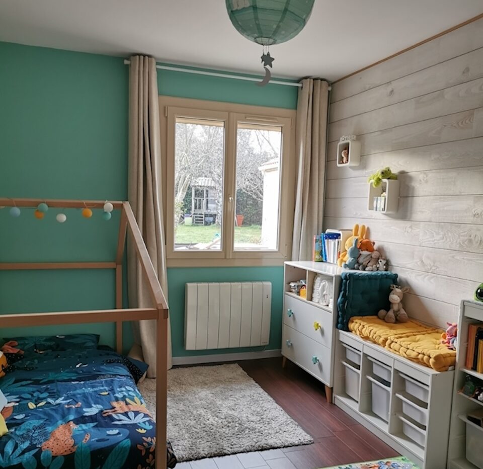 L’optimisation complète de ce pavillon a permis de gagner en espace et en confort. L’isolation a été refaite, une suite parentale a été créée avec son dressing et sa salle d’eau privative, et l’entrée est désormais équipée d’un grand placard et de toilettes séparées. La surface totale du bien est passée de 110 m² à 140 m².